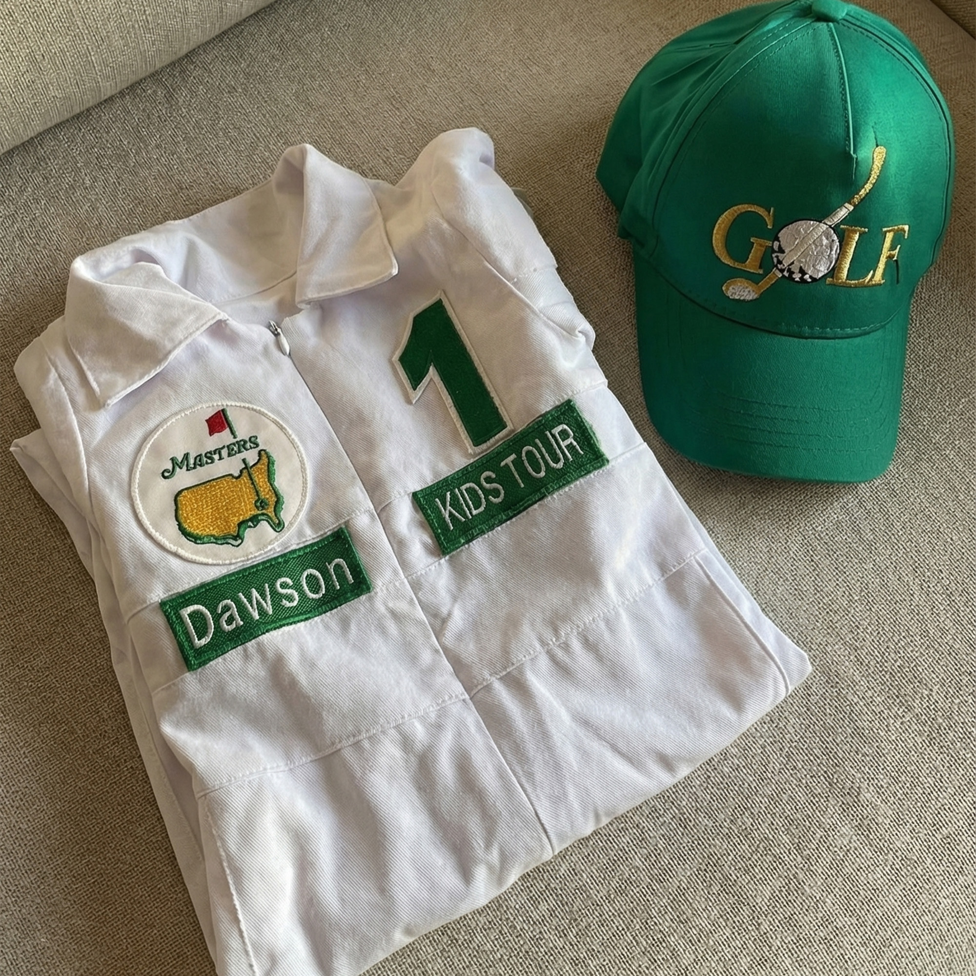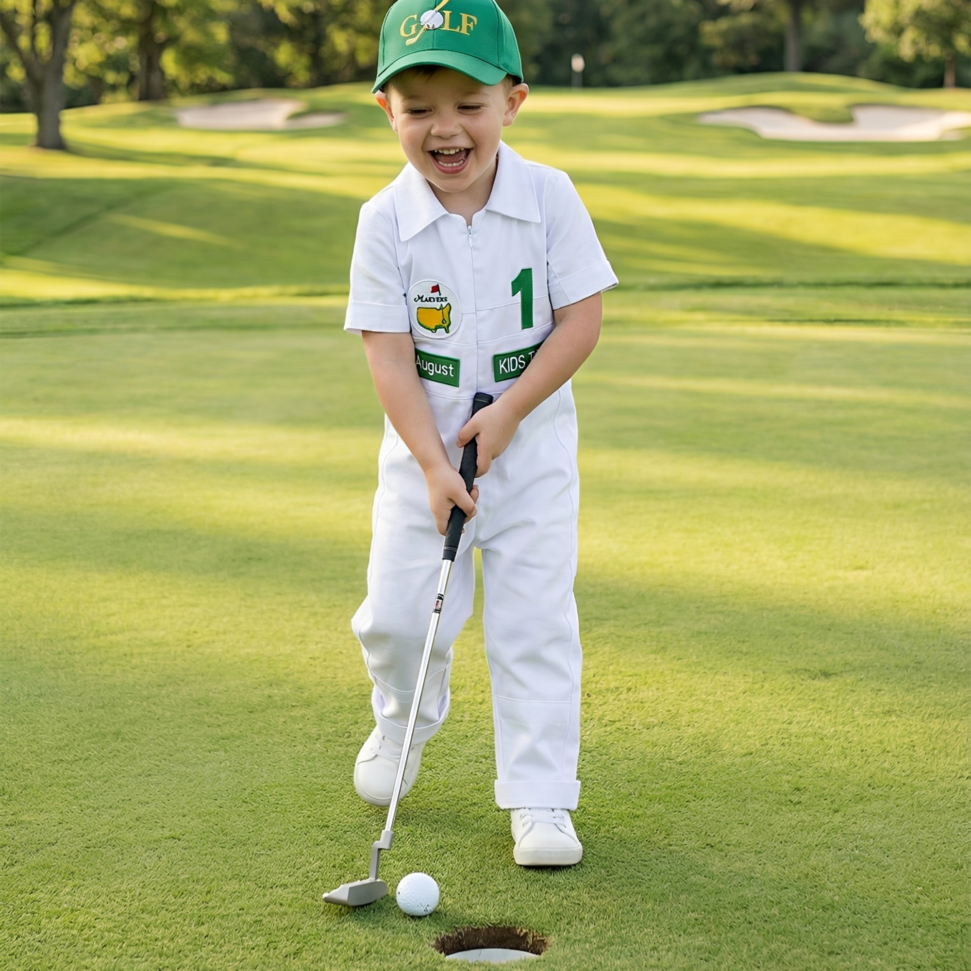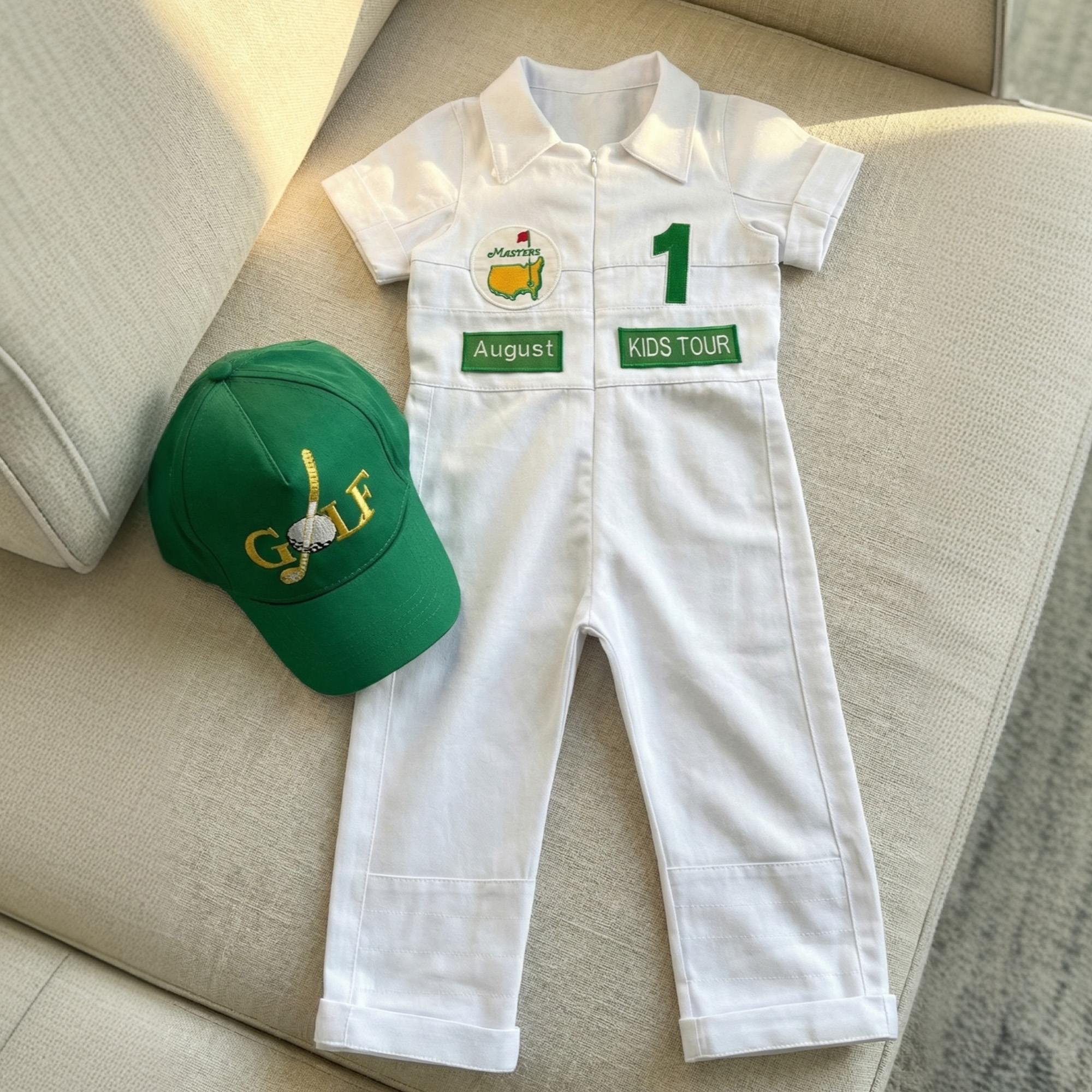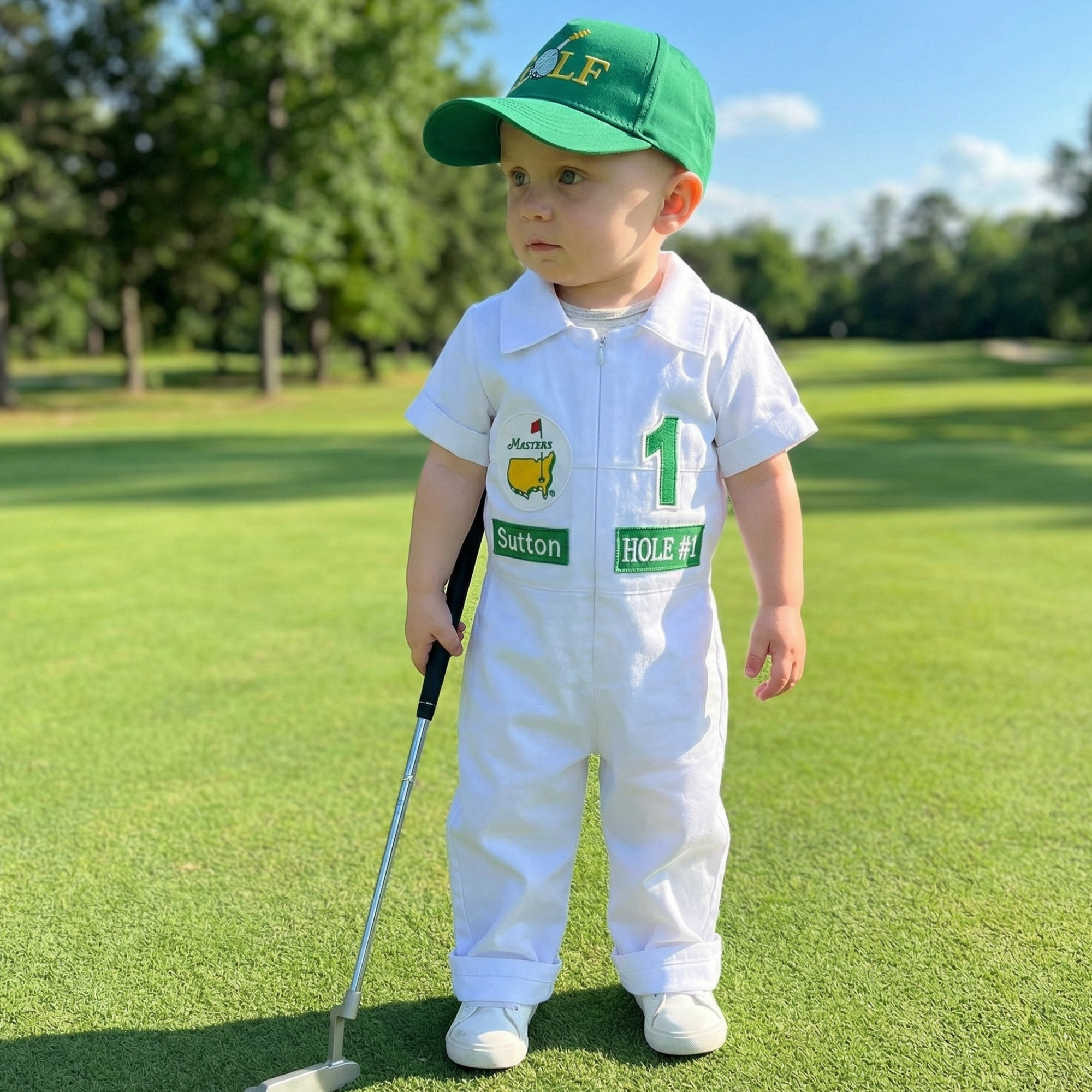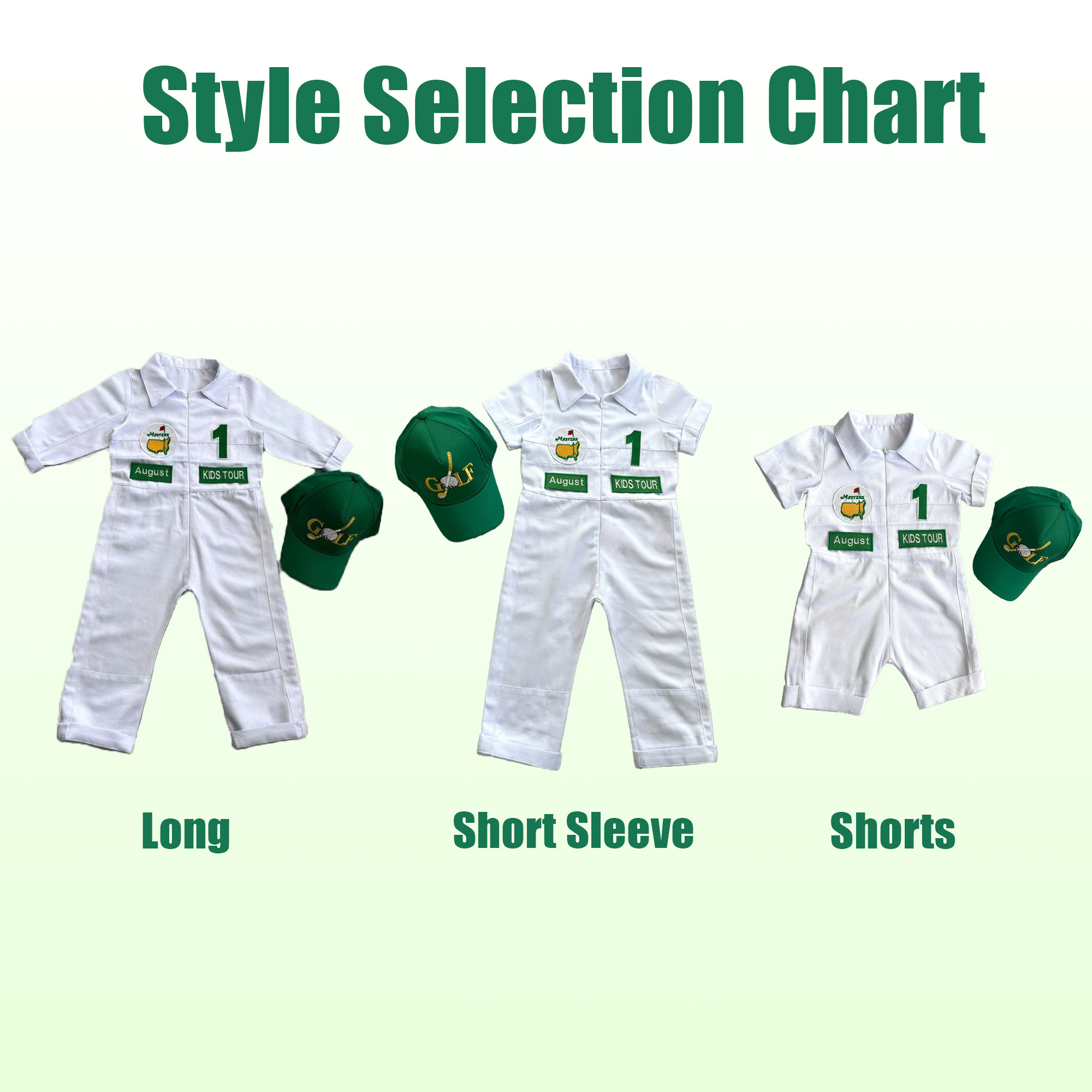 ⭐⭐Personalized Golf Shorts-Long Caddy Outfit for kids*Toddler Golf White-Green Suit*Baby Golf 1st Birthday Uniform*Toddler Masters Costume⭐⭐