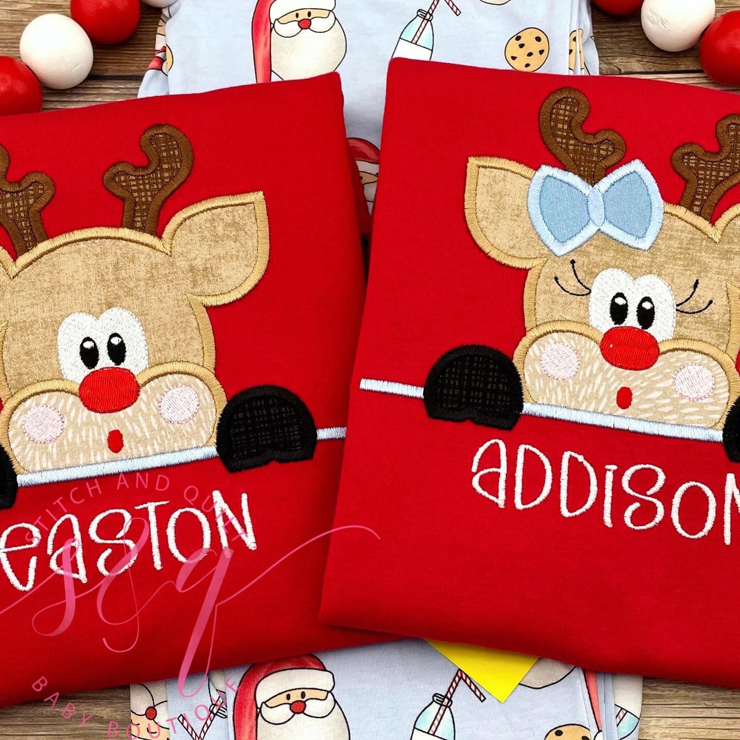 This unisex infant and toddler holiday set is available with a variety of festive embroidery designs and makes a thoughtful gift for little ones this season.